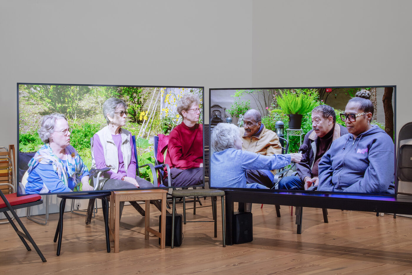 Ricerche: four is composed of interviews with three groups of LGBTQIA elders, filmed in Philadelphia, PA., Dowelltown, TN and in Los Angeles, CA. In joyful, illuminating and deeply moving conversations, participants reflect on their relationships to community, family, activism, sex and sexuality as well as to the changing political landscapes. While not all participants identify as elders, they each speak from deep and long experiences that shape their understandings of the social, political and economic promises and possibilities as well as of the obstacles for them and their communities. These conversations make an inspired proposition for the importance of intergenerational collaboration, dialogue and care.
